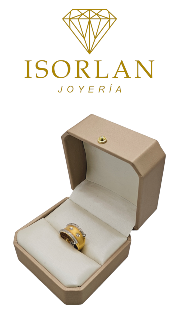 ANILLO BICOLOR CORDON Y DIAMANTES N15 5.9GR
