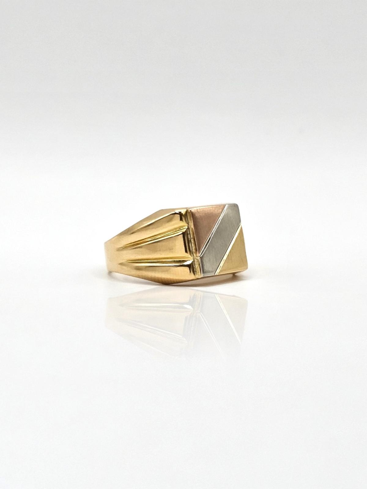 ANILLO SELLO CUADRADO TRICOLOR CON 2 LINEAS N14.5