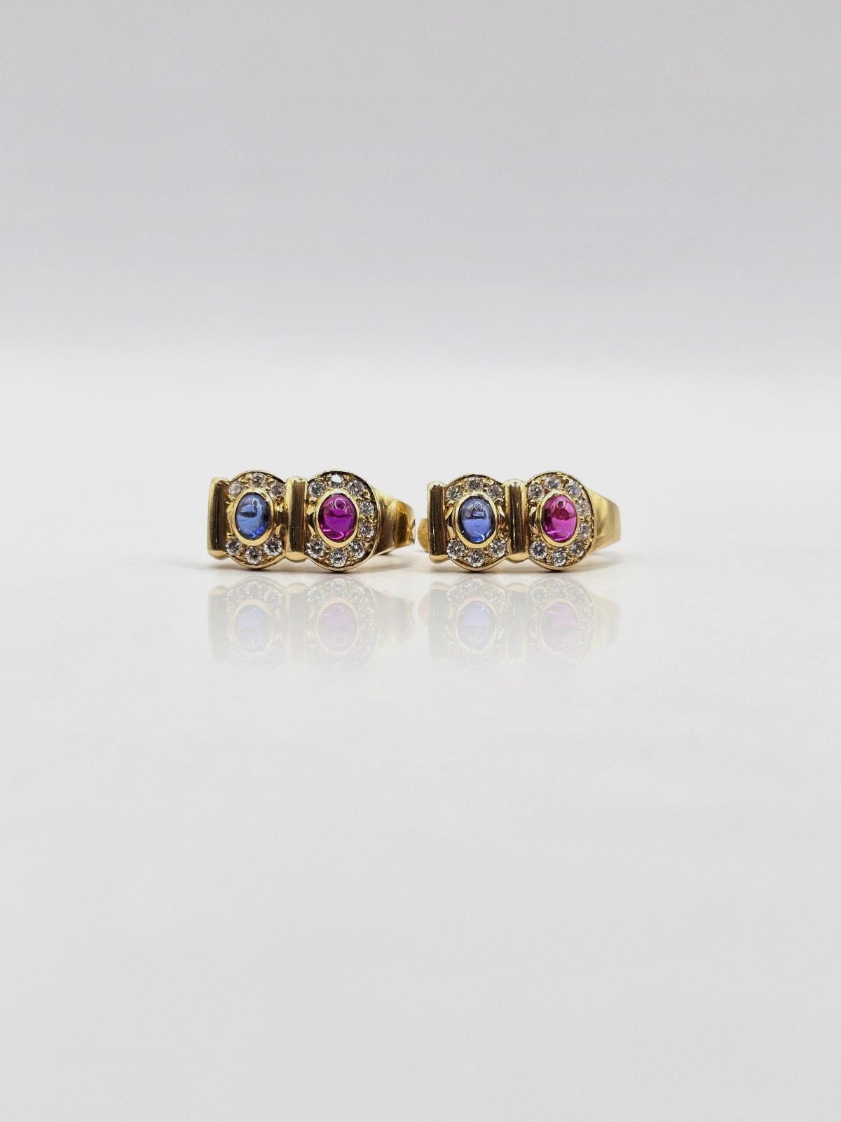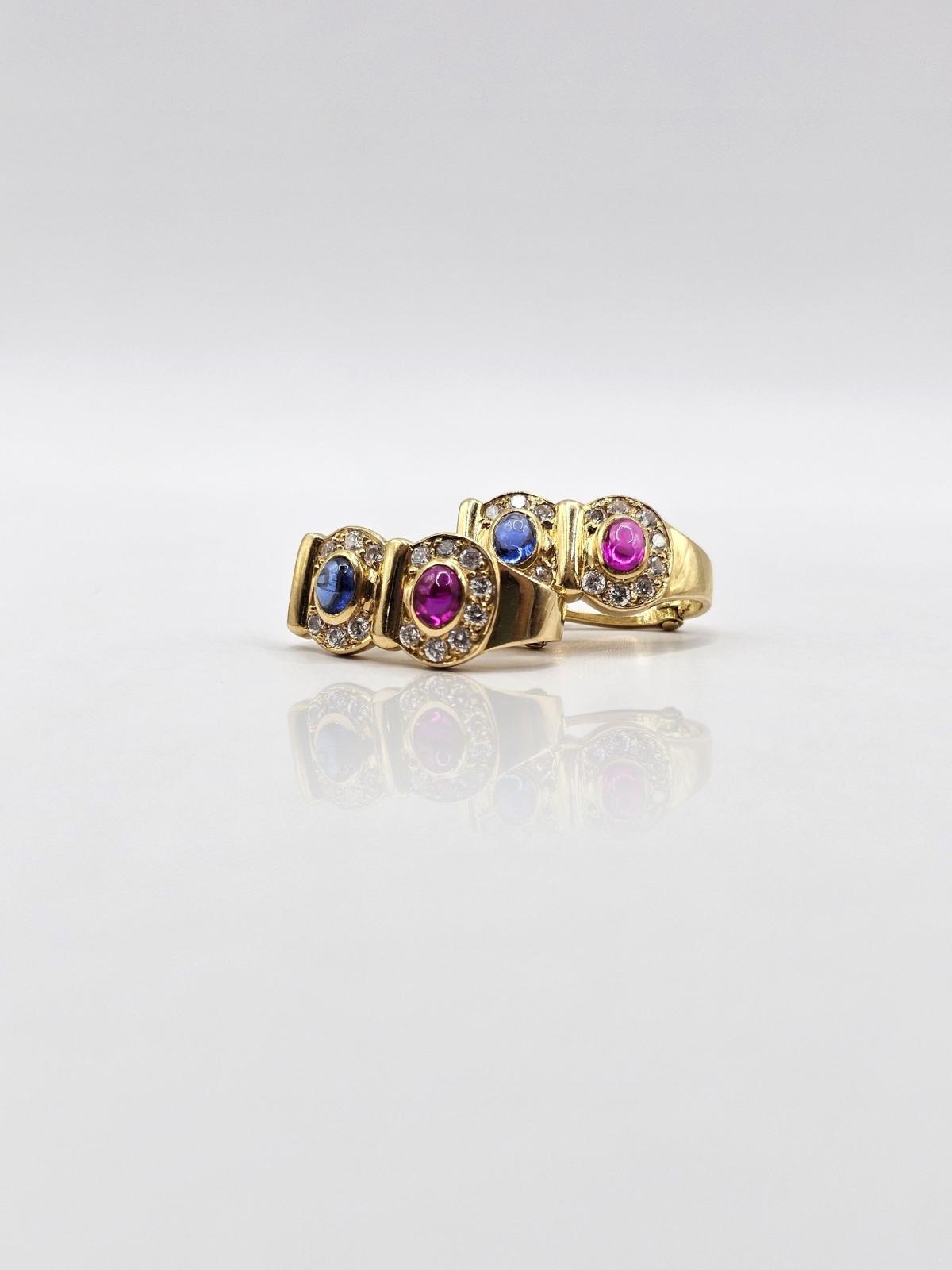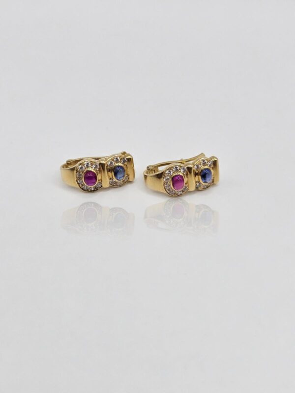 PENDIENTES CIERRE CATALÁN, PIEDRA AZUL Y ROSA CON CIRCONES