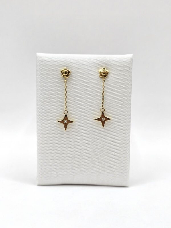PENDIENTES LARGOS FLOR Y ESTRELLA CON CIRCON CENTRAL. CIERRE PRESIÓN.