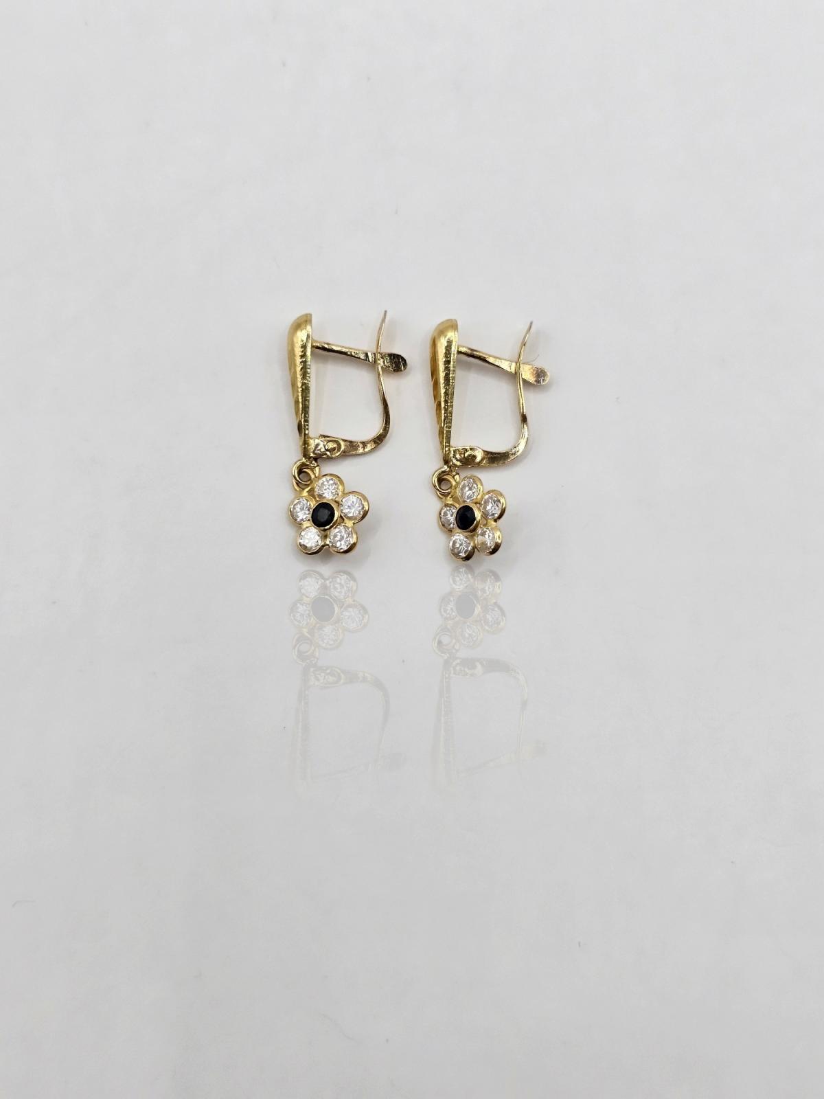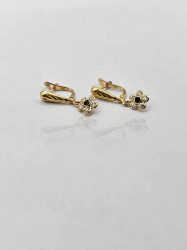 PENDIENTES GOTA CON FLOR CIRCONES BLANCOS Y NEGROS CIERRE CATALÁN