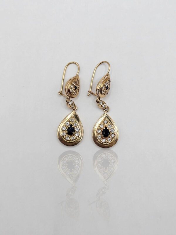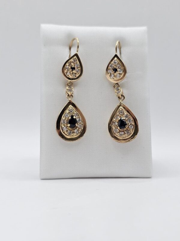PENDIENTES GOTAS CON CIRCONES BLANCOS Y NEGRO ORO ROSA CIERRE CATALÁN