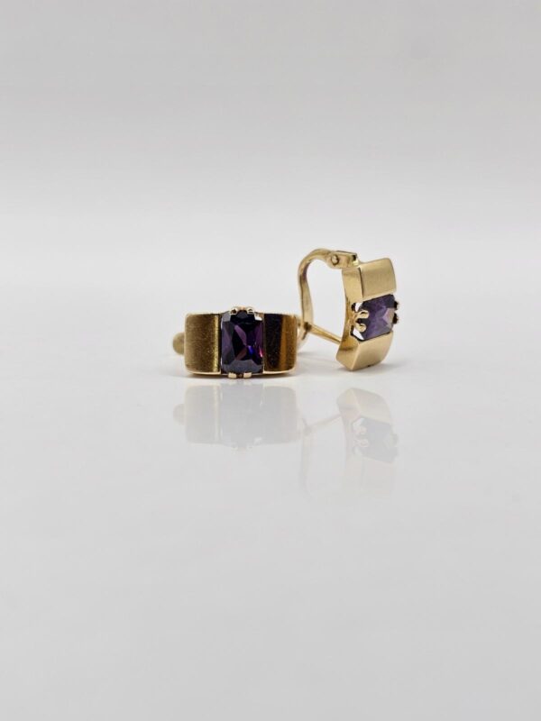 PENDIENTES RECTANGULO CON CIRCÓN MORADO CIERRE CATALÁN